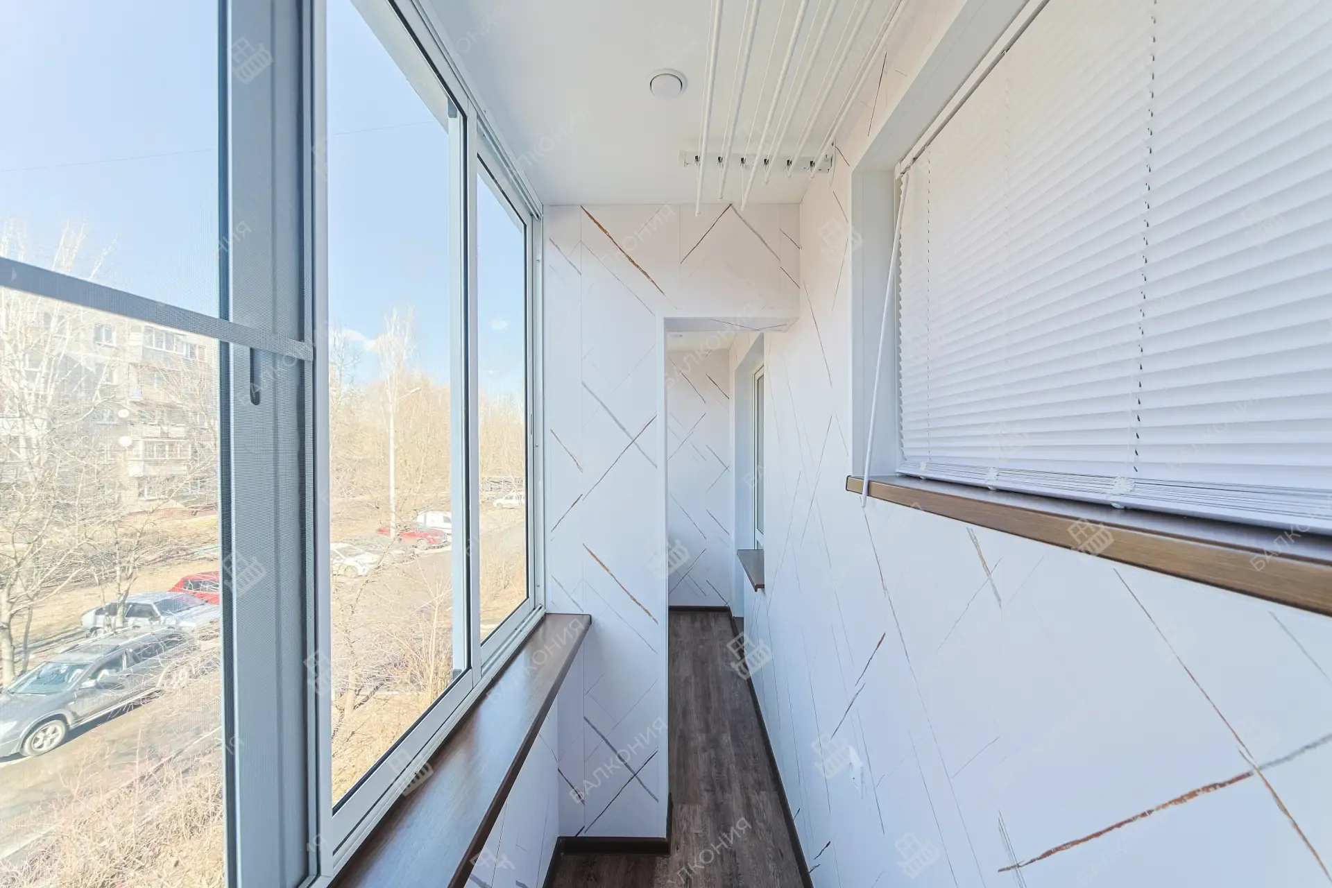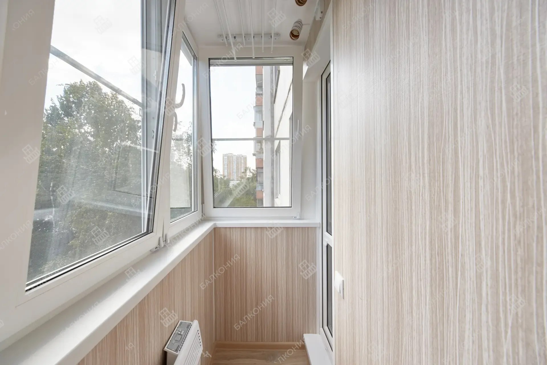 Специалисты «Балконии» монтируют панели на подготовленный каркас, аккуратно закрывают стыки и при необходимости совмещают обшивку с утеплением балкона.