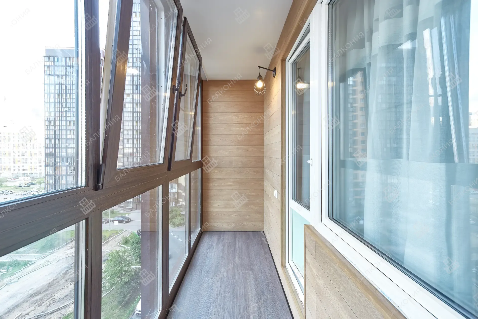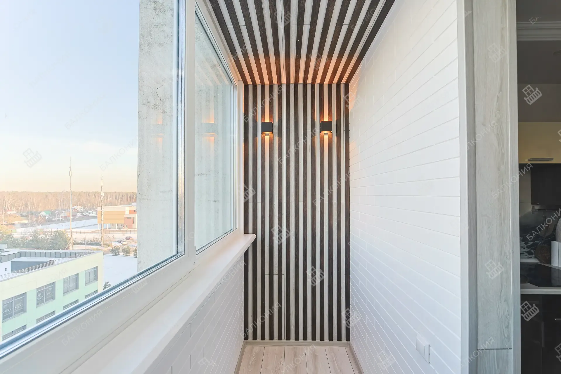 Мастера «Балконии» подбирают породу древесины, формат вагонки и тип покрытия так, чтобы отделка гармонировала с интерьером квартиры и долго служила без трещин и потемнений.